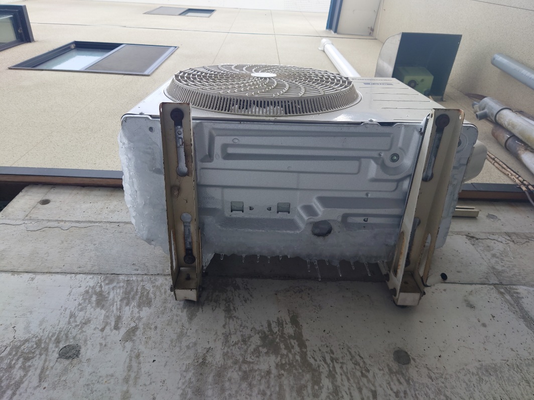 と思い室外機を見てみると、なんと氷がビッチリ!!!!