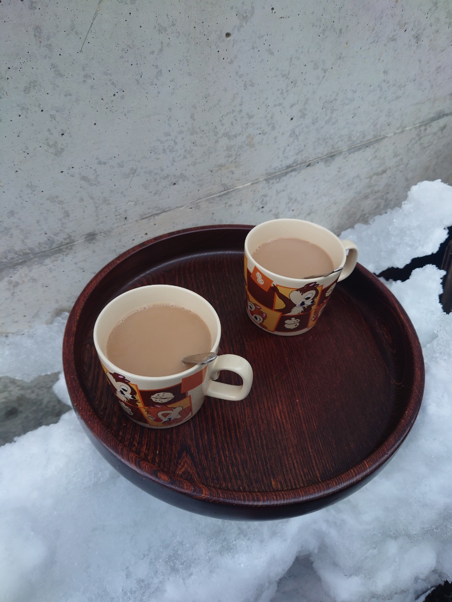 途中で暖かいコーヒーを頂きました。日が陰り水を使って作業していたので体に染みる染みる(*´▽`*)ごちそうさまでした。